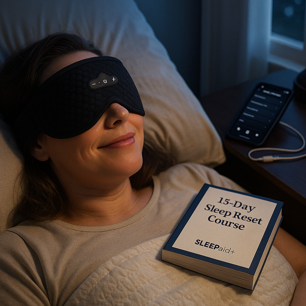 - First 15 nights: follow the 15-Day Sleep Reset. Wear the mask nightly and play one track for 10–25 minutes at bedtime.