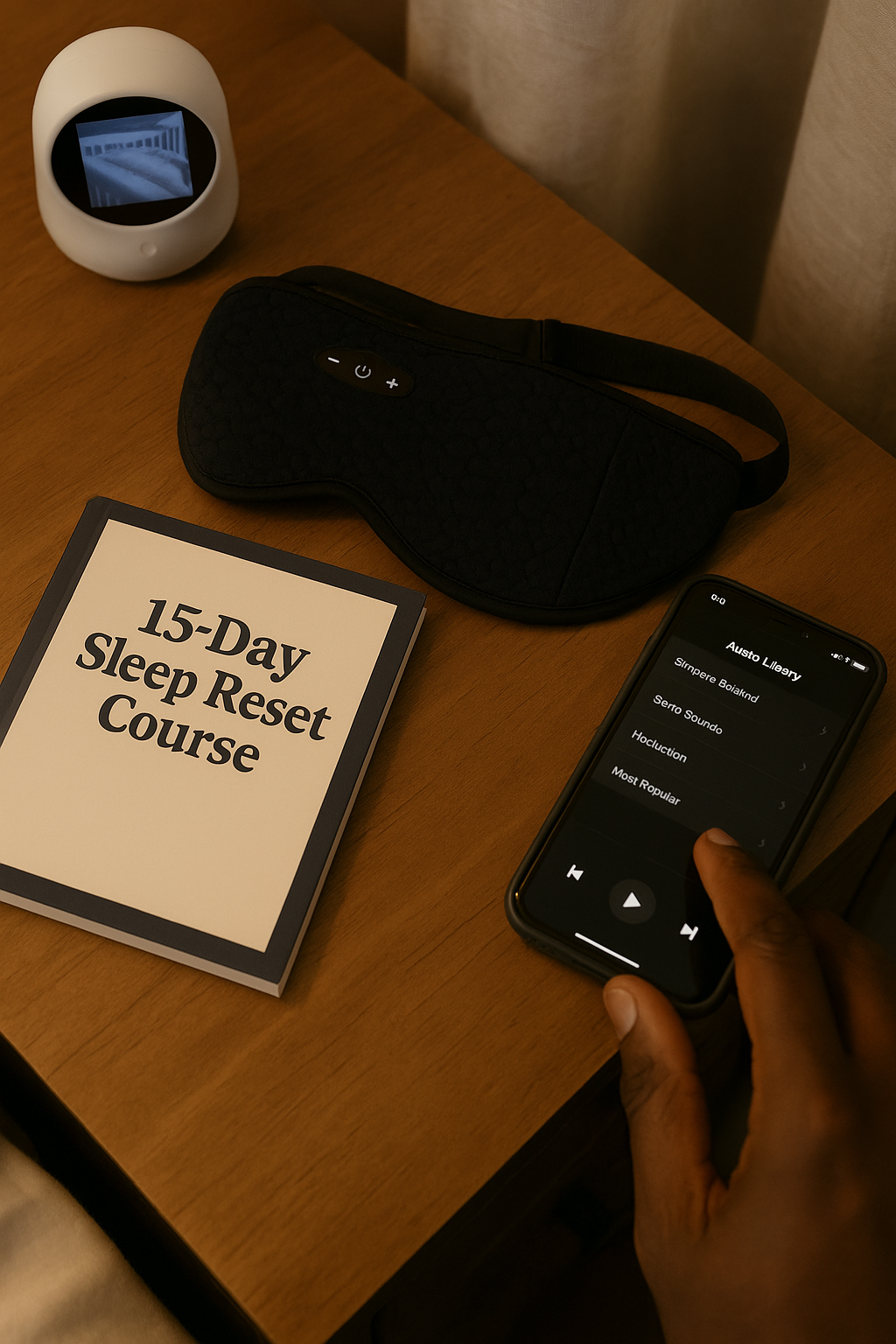 - 15-Day Sleep Reset Course (PDF) — simple nightly routine and tips for volume, timing, and wake-ups